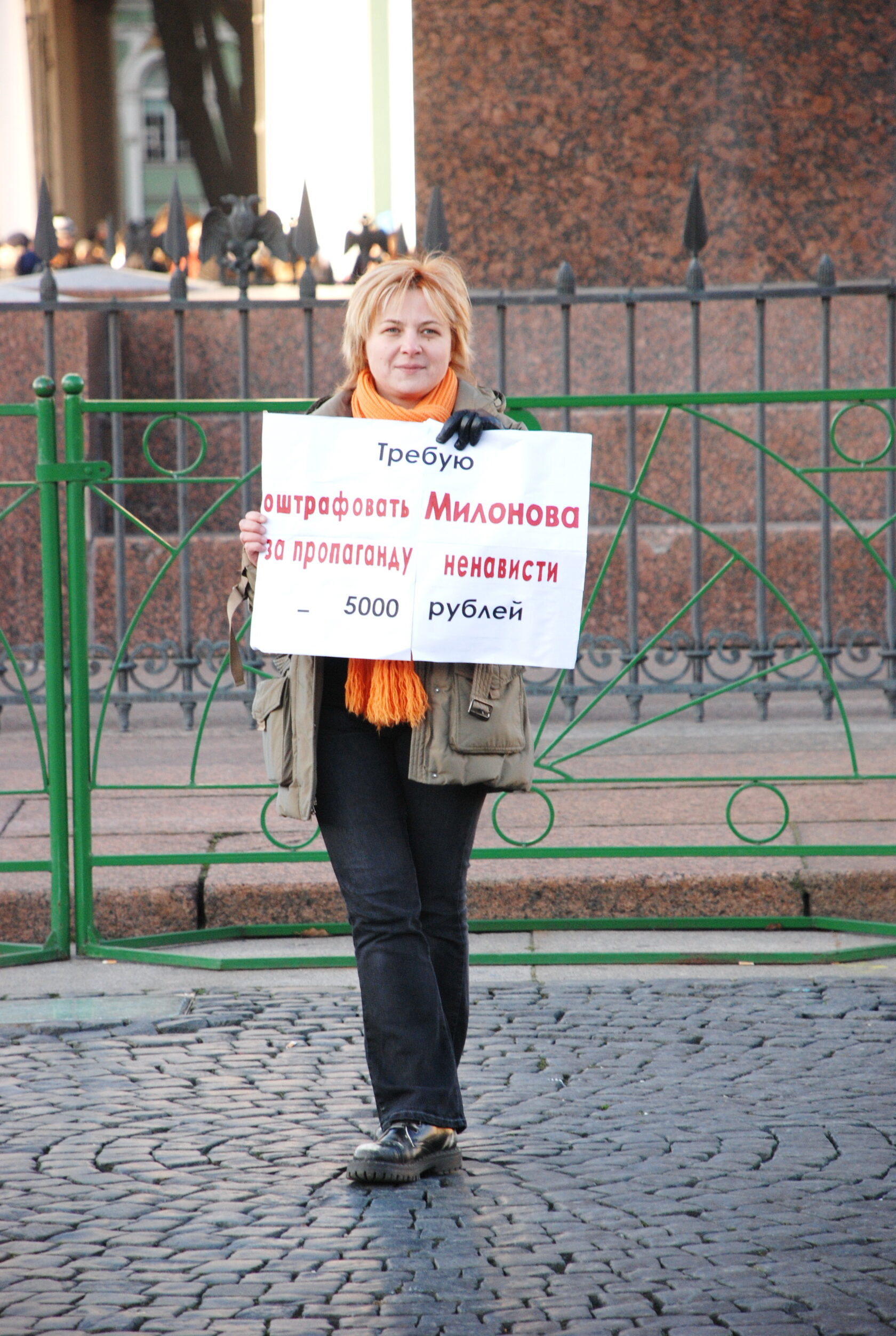 Наталья Цимбалова в пикете против принятия закона о запрете «пропаганды гомосексуализма».