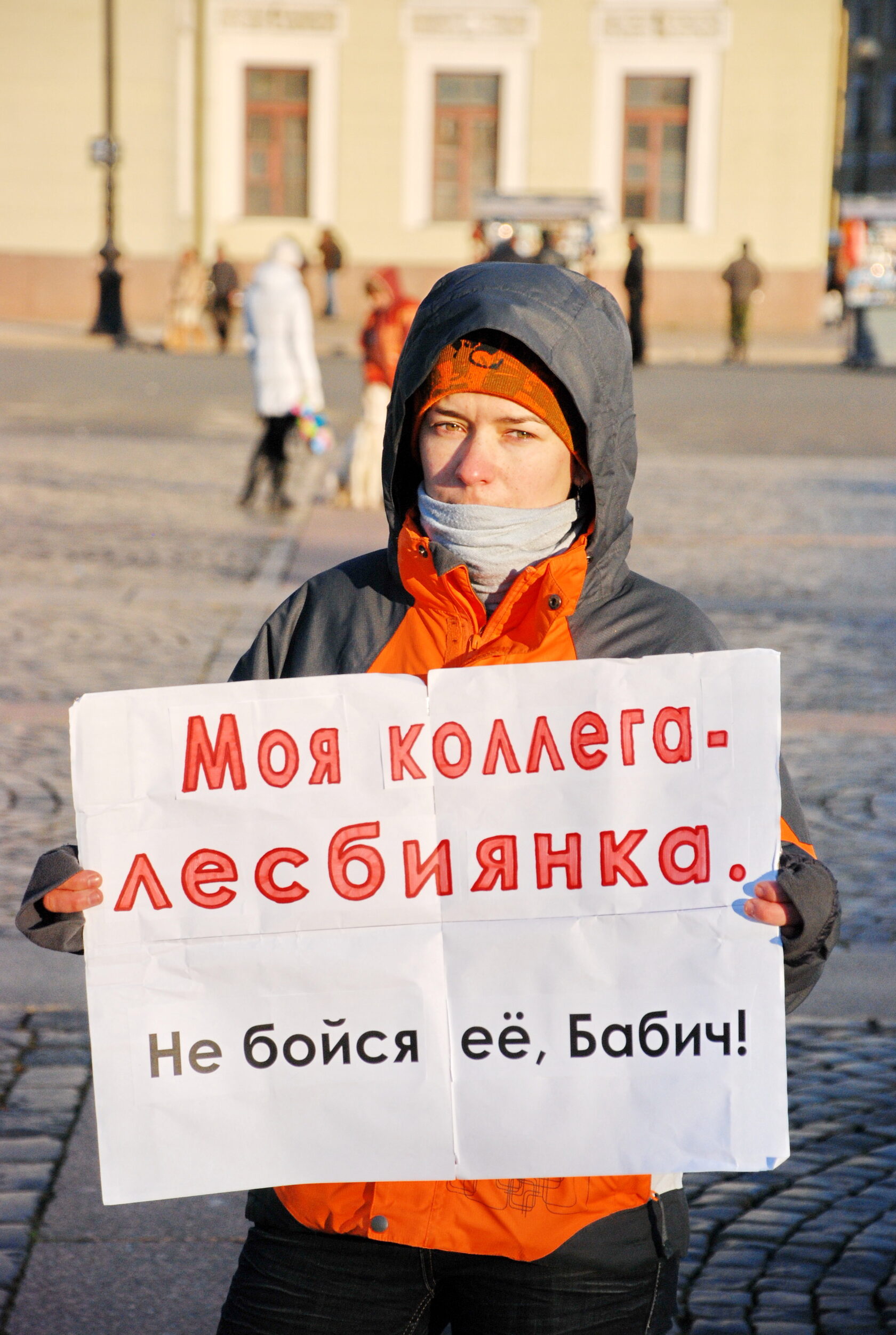 Одиночные пикеты на Дворцовой площади против принятия закона о запрете «пропаганды гомосексуализма».