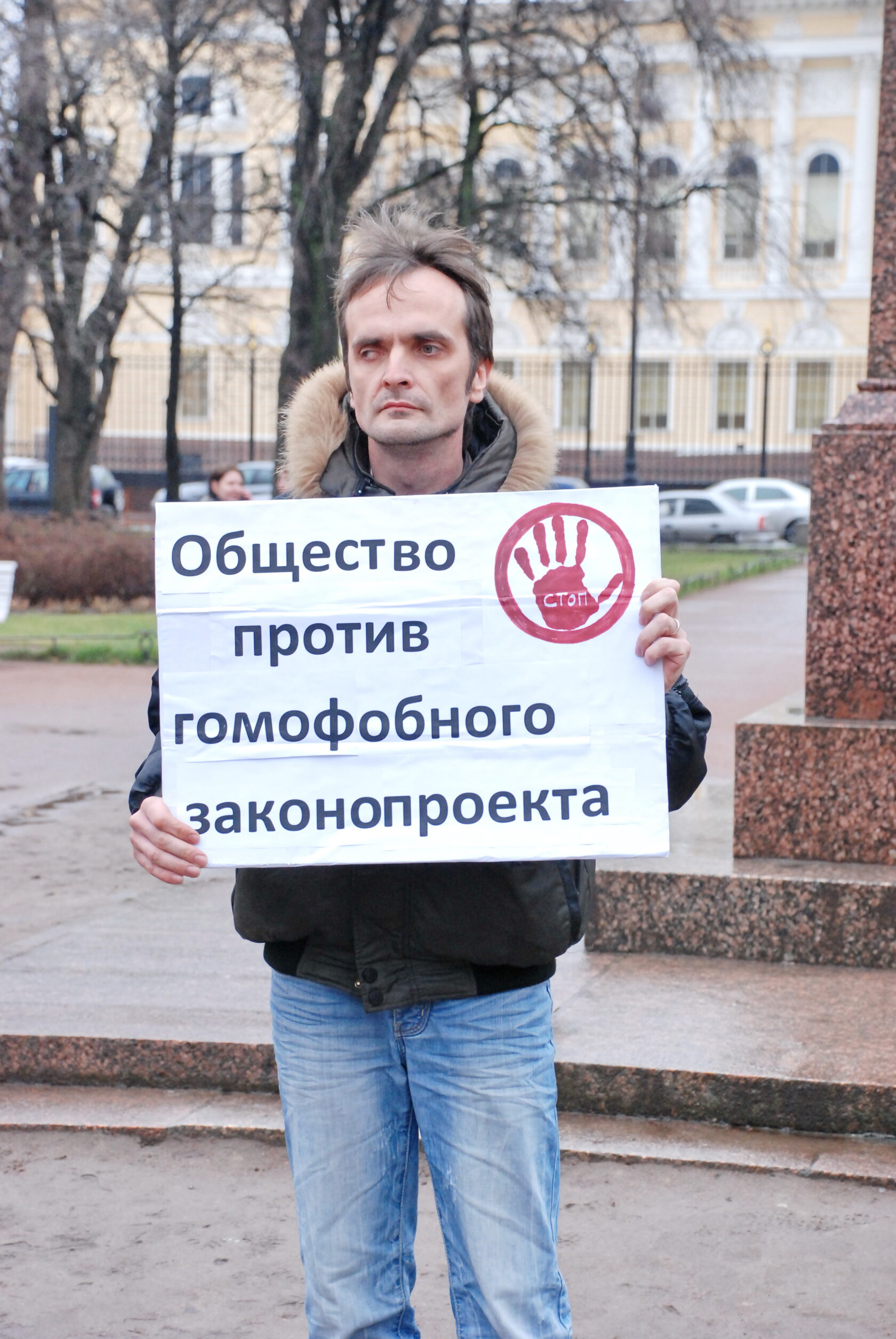 Андрей Юров в пикете на Дворцовой площади против принятия закона о запрете «пропаганды гомосексуализма».